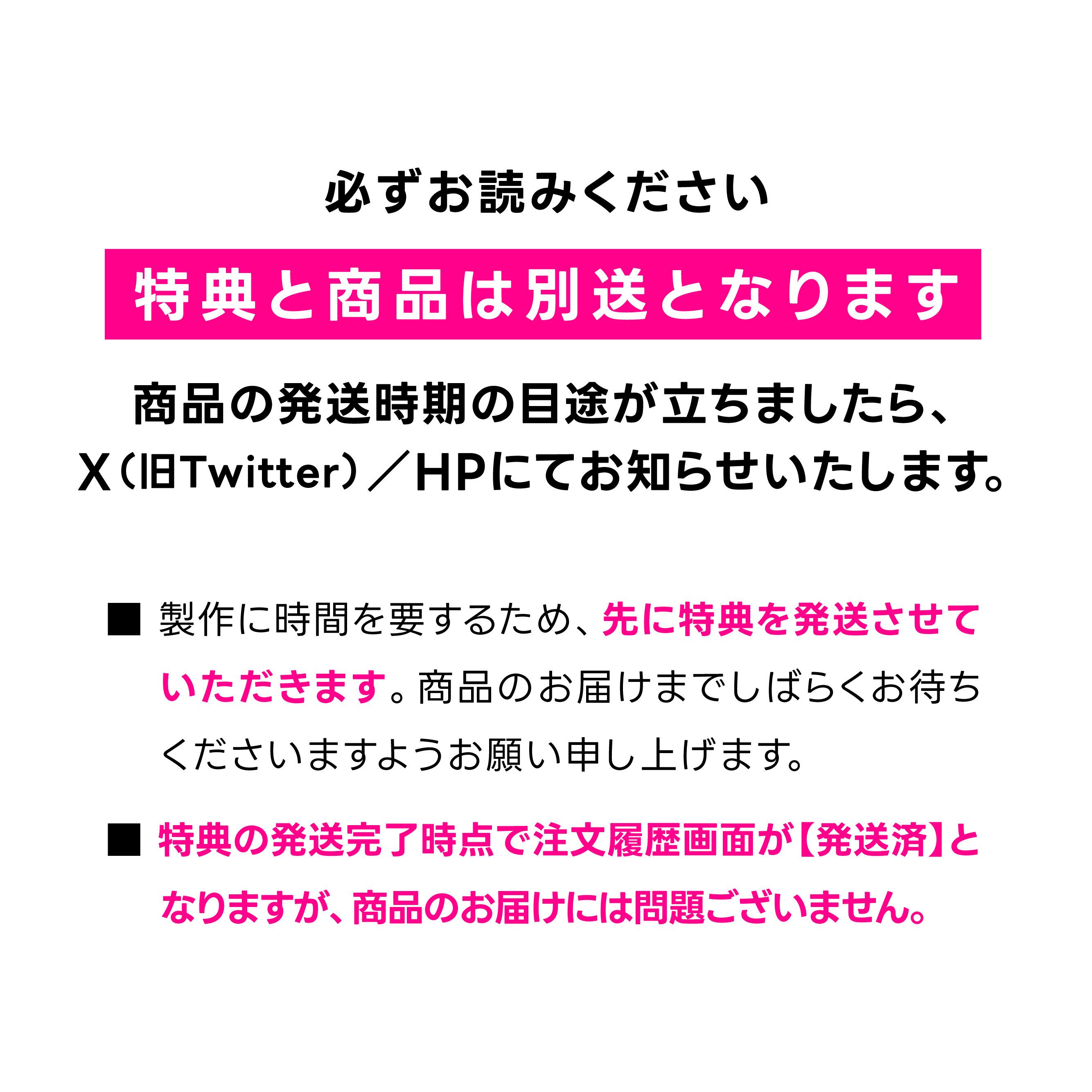 先に特典を発送させていただきますので、商品のお届けまでしばらくお待ちくださいますようお願い申し上げます。
