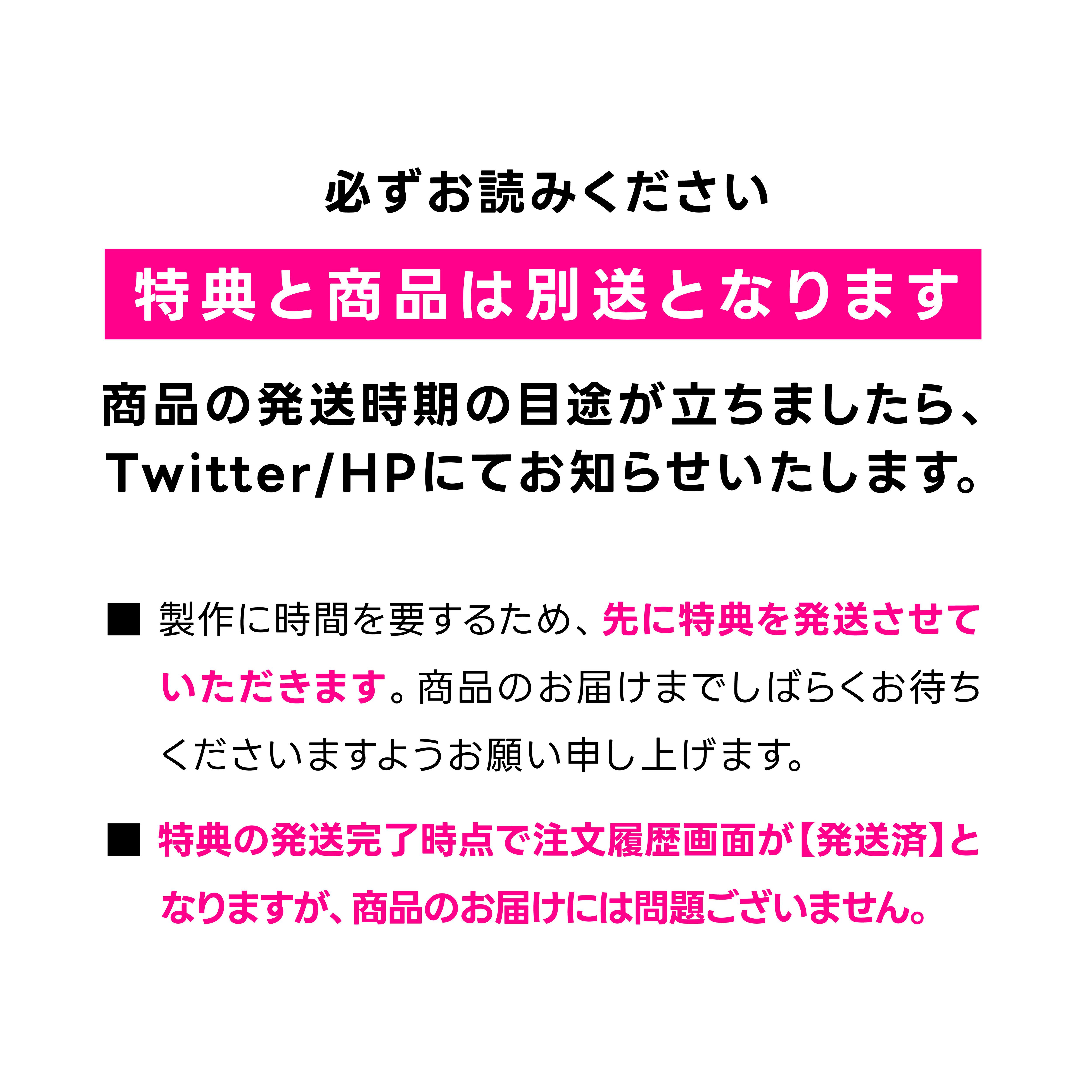 先に特典を発送させていただきますので、商品のお届けまでしばらくお待ちくださいますようお願い申し上げます。